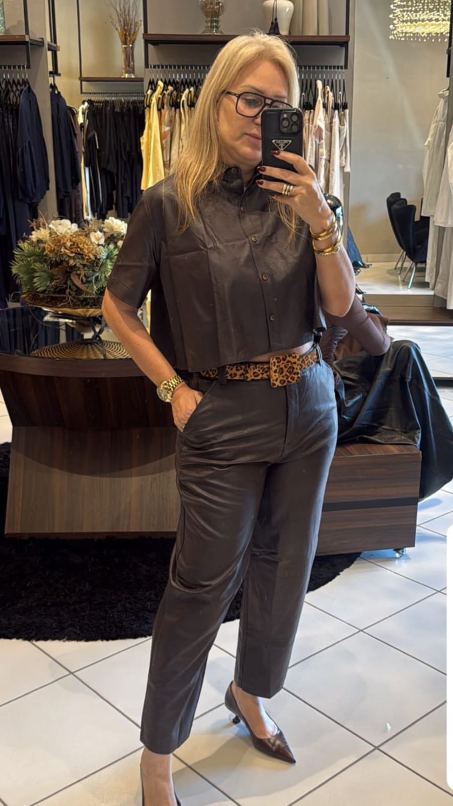 A Camisa da marca Conceito Mika é a tradução perfeita de elegância contemporânea. Confeccionada em couro P.U de alta qualidade, a peça traz um design moderno com modelagem cropped, mangas curtas e fechamento frontal por botões, criando um visual sofisticado e cheio de personalidade.